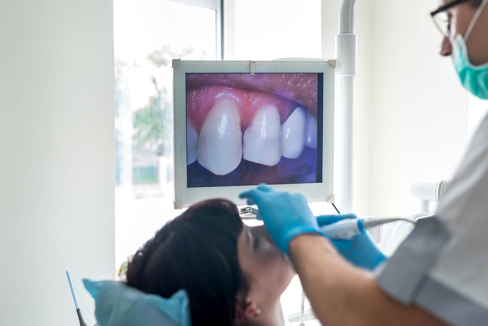 Die intraorale Kamera unterstützt den Zahnarzt bei der Diagnose und Therapieplanung, indem der Patient auf einem Monitor besser als in jedem Spiegel in seinen Mund schauen kann.